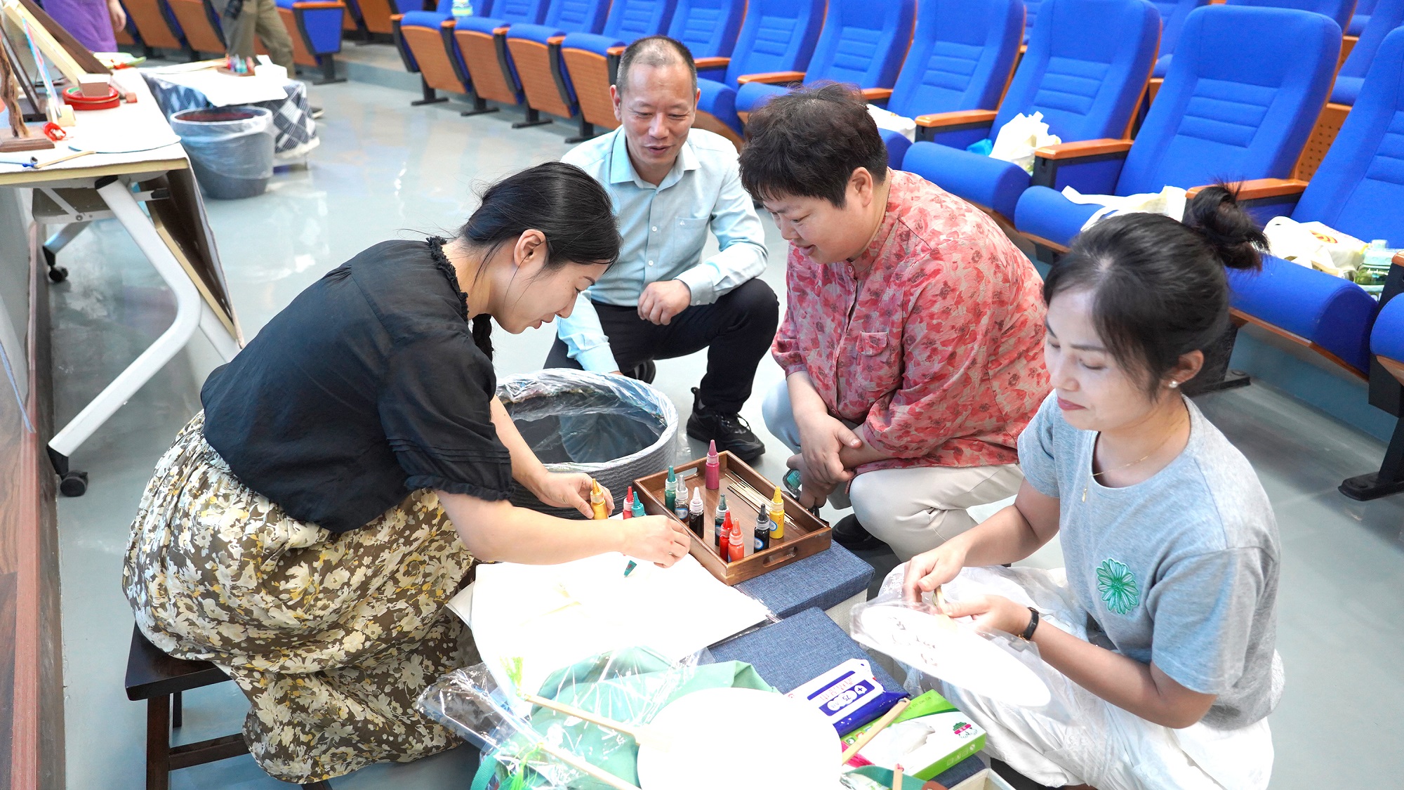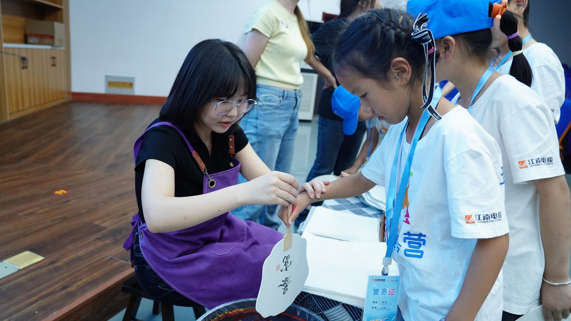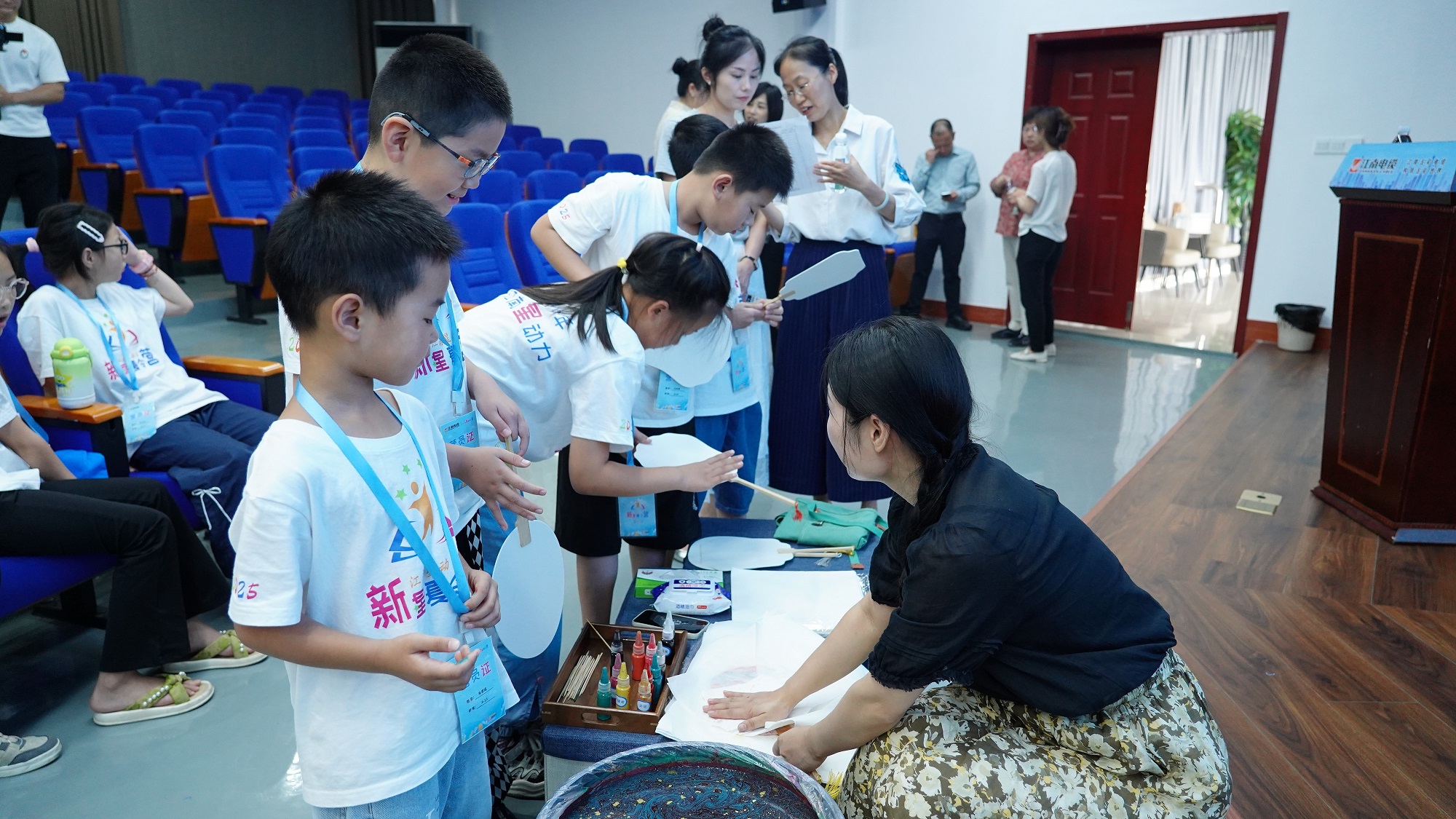 在老師的指導(dǎo)下,孩子們認(rèn)真學(xué)習(xí)漆扇制作技巧,從顏色選擇到滴入漆料再到素扇入水附著花紋,一把把絢麗、雅致的漆扇躍然而出。大家在實(shí)踐中感受非遺技藝的精妙,更在潛移默化中培養(yǎng)了對(duì)傳統(tǒng)文化的熱愛(ài)。