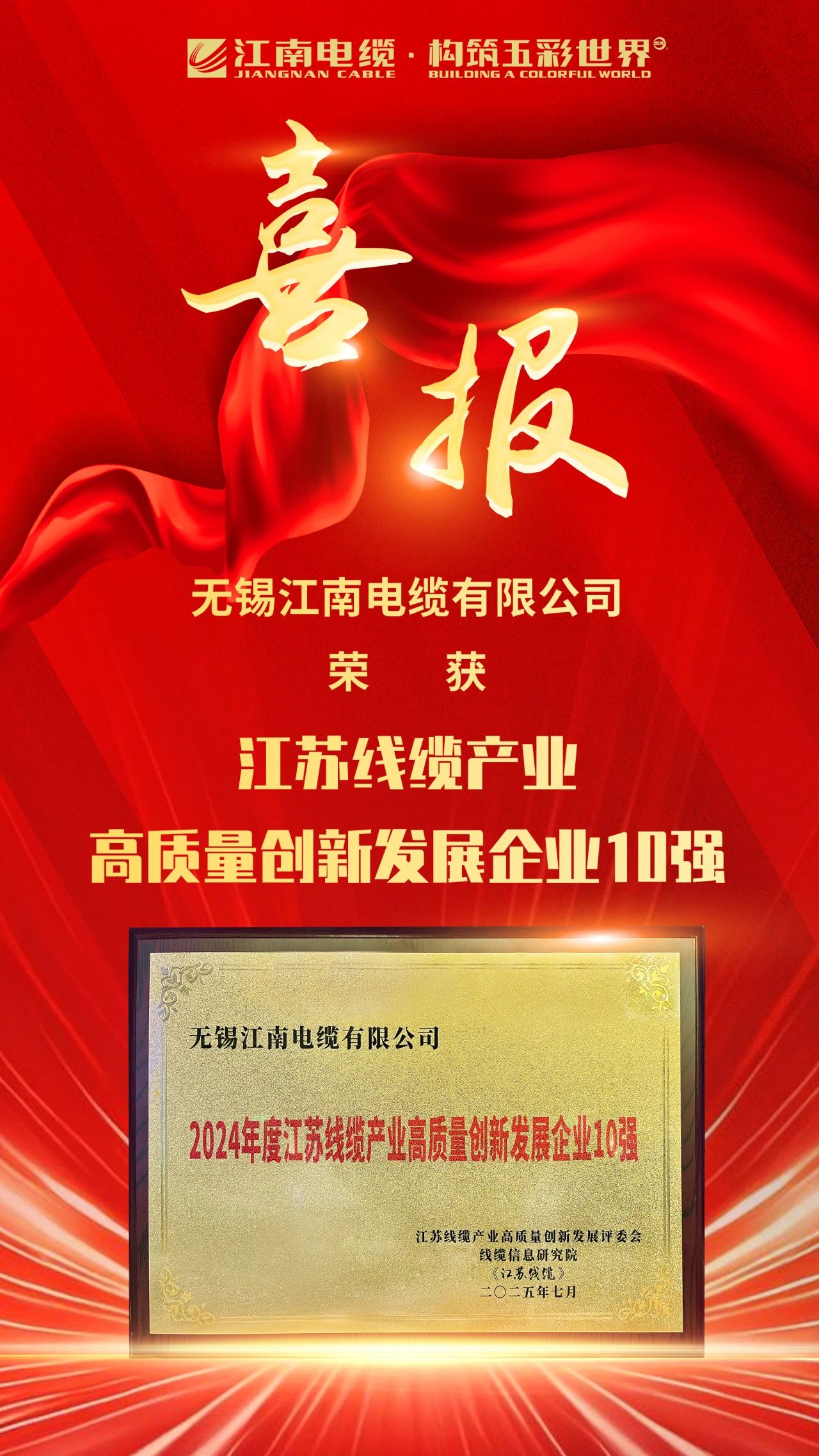 7月25日,江蘇省線纜行業(yè)高質(zhì)量發(fā)展峰會(huì)在南通隆重召開(kāi),會(huì)議發(fā)布了“江蘇線纜產(chǎn)業(yè)高質(zhì)量創(chuàng)新發(fā)展企業(yè)10強(qiáng)”、江蘇省電線電纜行業(yè)2024年度“科技尖兵/杰出工匠/優(yōu)秀經(jīng)理”等榜單。