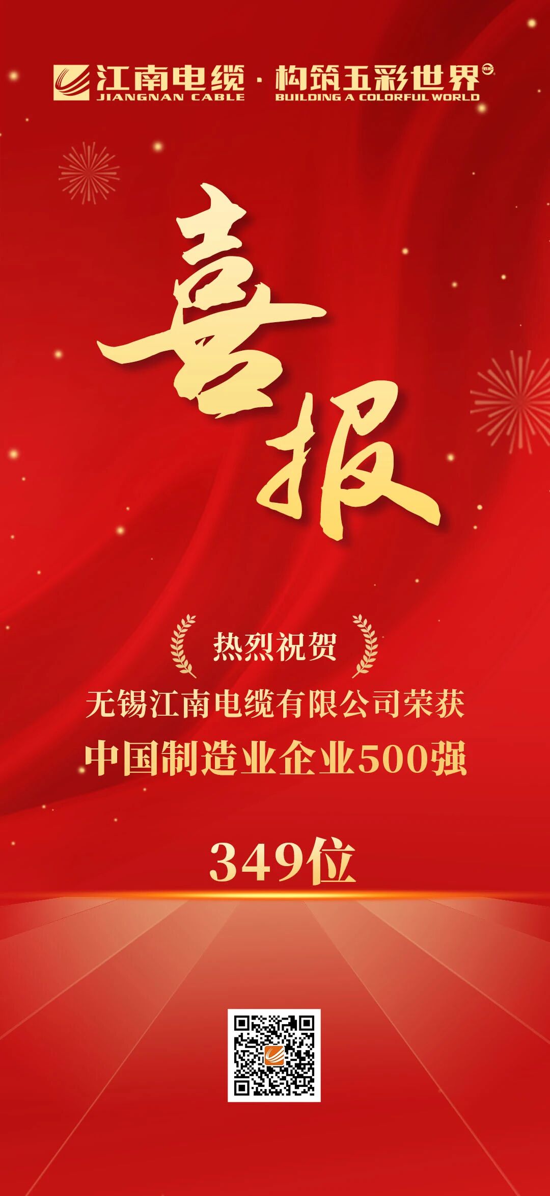 【喜報(bào)】江南電纜榮獲2025中國制造業(yè)企業(yè)500強(qiáng)!